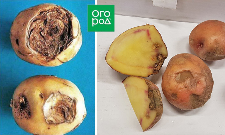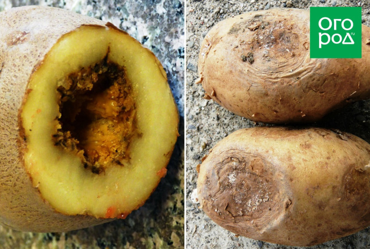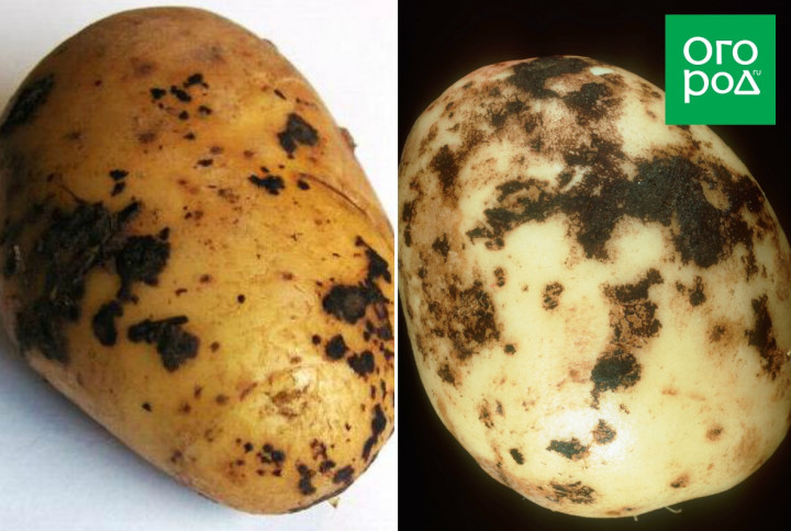 Особливо небезпечно те, що симптоми на бульбах проявляються через 2–3 місяці після закладання на зберігання.