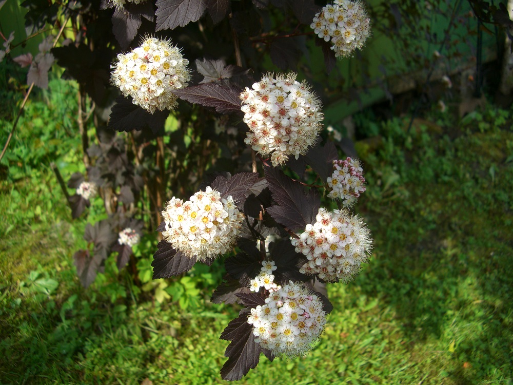 Пузироплідник калинолистий декоративних сортів із золотим чи пурпурним листям теж закладає квіткові бруньки на старих пагонах, тому обрізають його навесні.