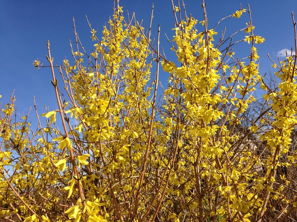 У наших садах добре ростуть зимостійкі форзиції — проміжна та овальна. Вони рясно цвітуть наприкінці квітня й обрізаються лише після цього періоду.
