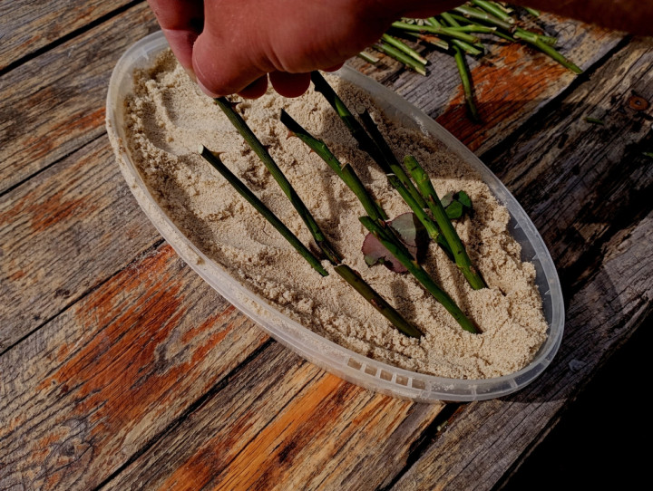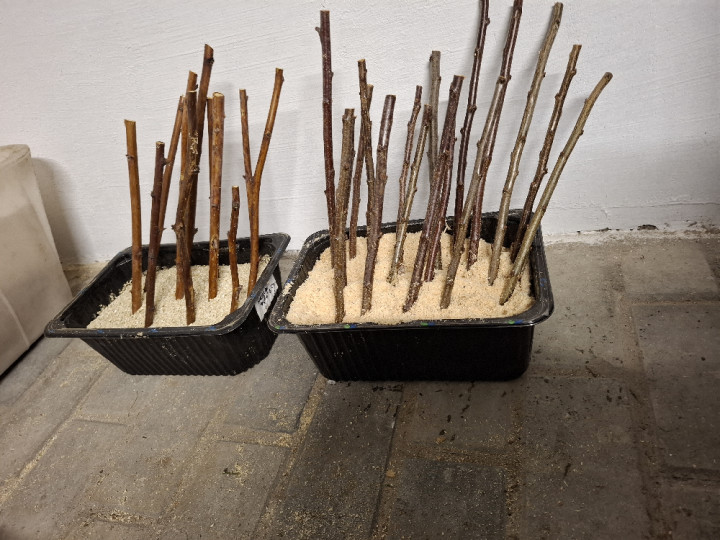 Пучки живців прикопують у вологий пісок, торф, опилки або вермикуліт. Субстрат повинен бути злегка вологим, але не мокрим. Раз на 3–4 тижні перевіряють стан і вологість.