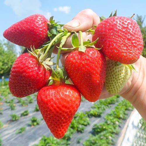Саджанці полуниці Сан Андреас – ремонтантний сорт з високими, міцними кущами та великими ягодами вагою 30–50 г! Плодоносить кілька хвиль з весни до пізньої осени, забезпечуючи стабільний урожай протягом сезону. Ягоди конічні, яскраво‑червоні, з щільною м’якоттю, добре транспортуються та довго зберігаються. Смак солодкий з помітною кислинкою, ідеальний для свіжого споживання, десертів, заморозки та переробки. Схожість саджанців висока, рослини добре вкорінюються та витримують змінну погоду. Купуйте саджанці полуниці Сан Андреас для городу, дачі, теплиць або для продажу. Доставка по Україні.